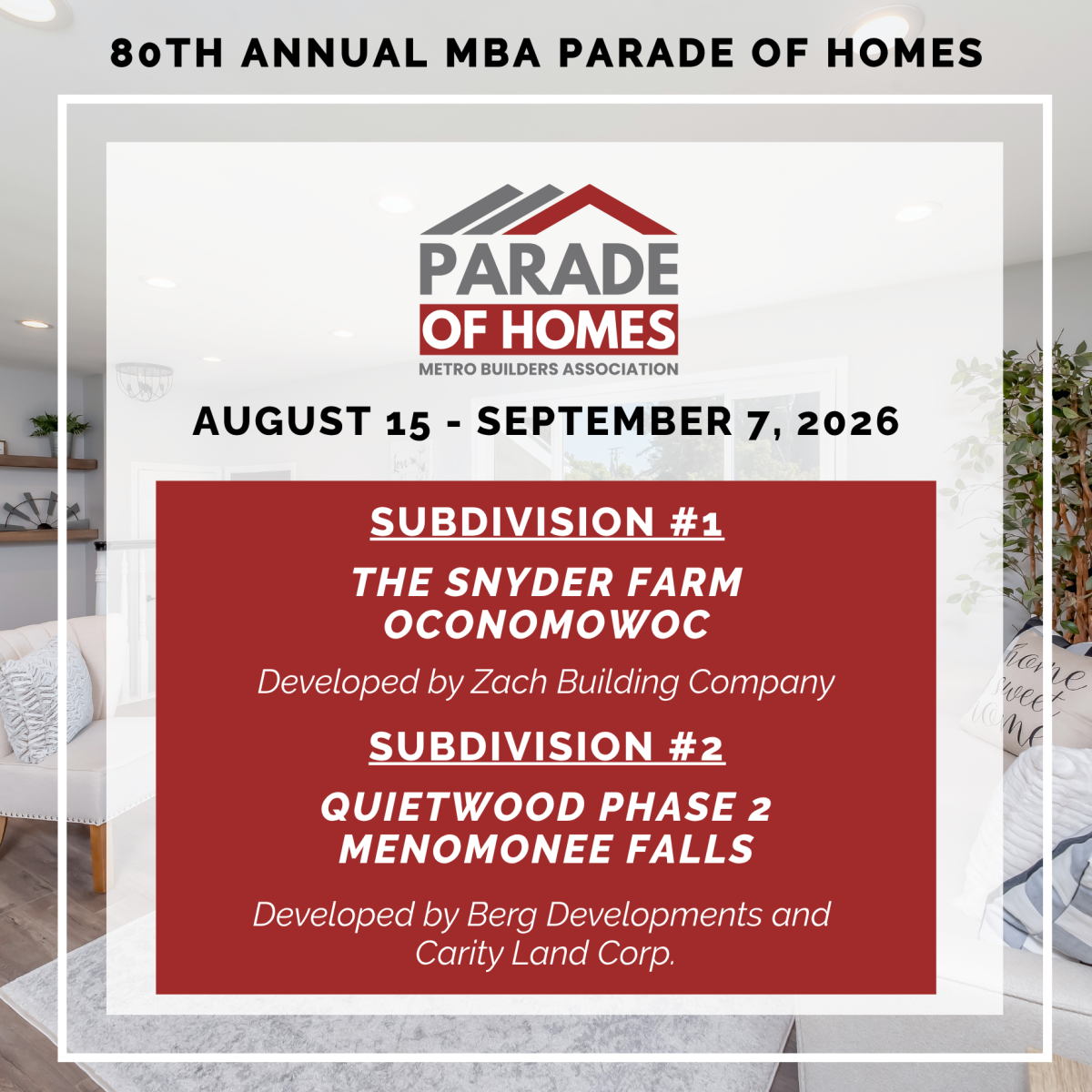 SAVE THE DATE FOR OUR 80TH ANNUAL PARADE OF HOMES!